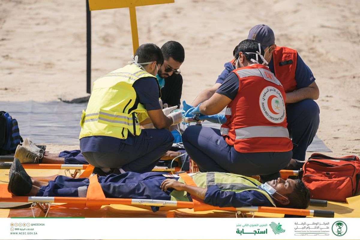 وأوضح المتحدث الرسمي للمركز سعد المطرفي، أن التمرين التعبوي طبق سيناريو افتراضي على مدى يومين، نفذت فيه الجهات المشاركة اختباراتها الخاصة في التعامل مع أي كارثة بيئية محتملة، بدءاً من رصد أنظمة الاستشعار وطائرات “الدرونز” بقعة زيت بحجم يتجاوز 70 ألف برميل قبالة شاطئ الخفجي، ويصل بعد ذلك بلاغ لمركز الاتصال الموحد 988 والذي بدوره يمرره إلى كافة الجهات المعنية وعلى رأسها إمارة المنطقة الشرقية – مكان الحدث الافتراضي- والقوات الجوية والبرية والبحرية بحسب حدود مسؤولياتهم.