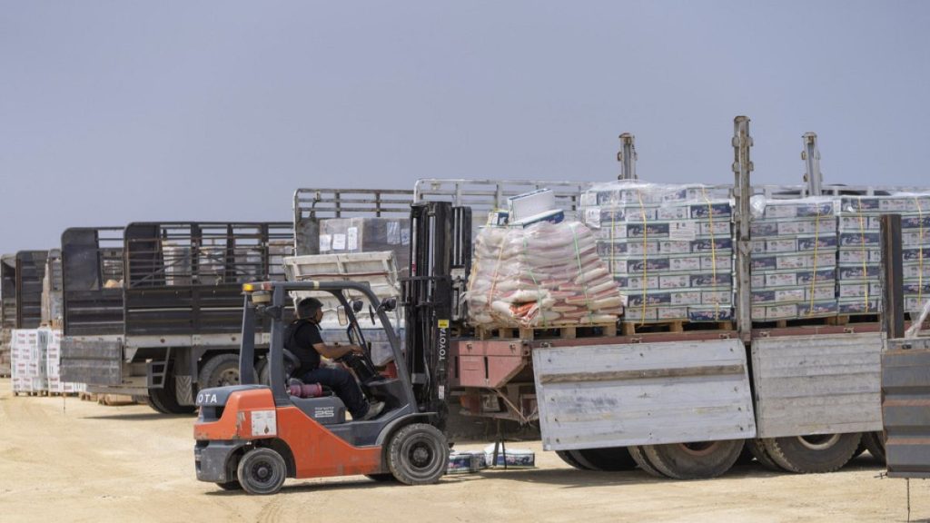 واصطفت الشاحنات التي تحمل المساعدات الغذائية والإنسانية أمام معبر إيريز في انتظار دخولها إلى قطاع غزة المحاصر. وقد تمّت الإشارة إلى أن شاحنات المساعدات جاءت من الأردن.