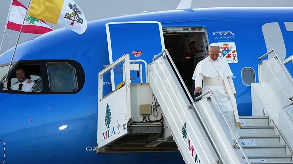 ووصل البابا إلى لبنان (5.8 مليون نسمة) الذي يشهد أزمة اقتصادية طاحنة شملت انهيار العملة وتضخماً جامحاً وتدهور الخدمات إضافة إلى تداعيات انفجار مرفأ بيروت المدمر عام 2020.