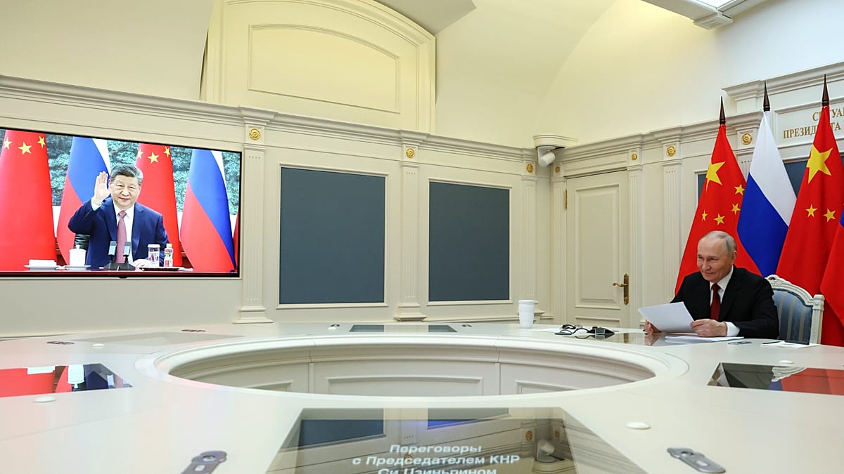 أجرى الرئيس الصيني شي جين بينغ والرئيس الروسي فلاديمير بوتين، الأربعاء، محادثات عبر الفيديو استمرت نحو ساعة ونصف الساعة، أكد خلالها الزعيمان على ضرورة تعزيز العلاقات الثنائية في ظل الاضطرابات الدولية المتزايدة.