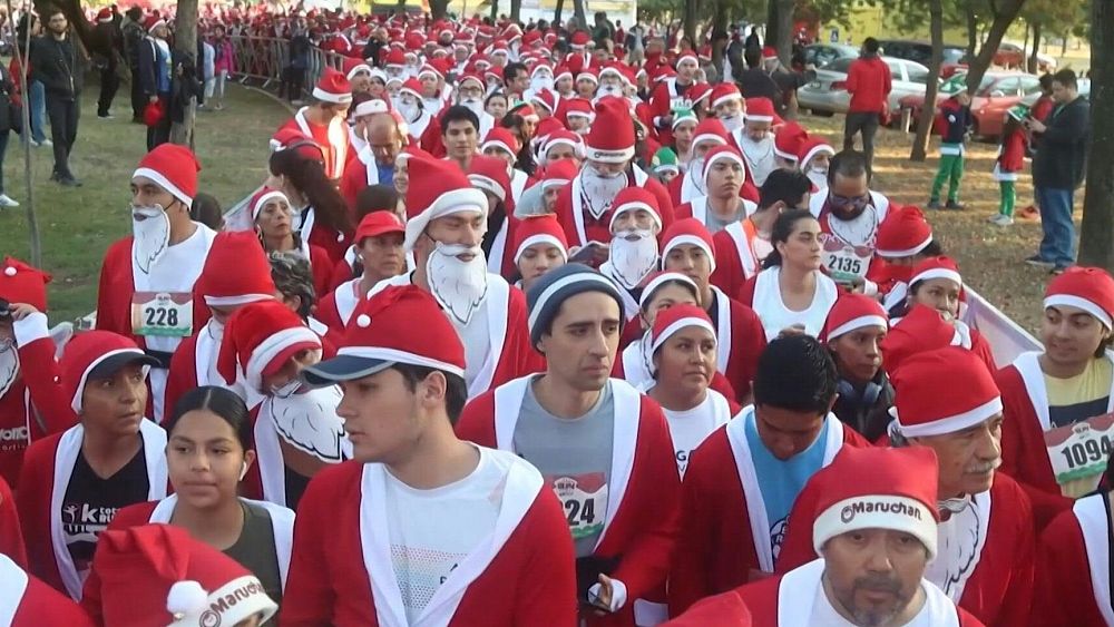 شاهد: المئات يرتدون زي سانتا كلوز خلال مشاركتهم في سباق في المكسيك