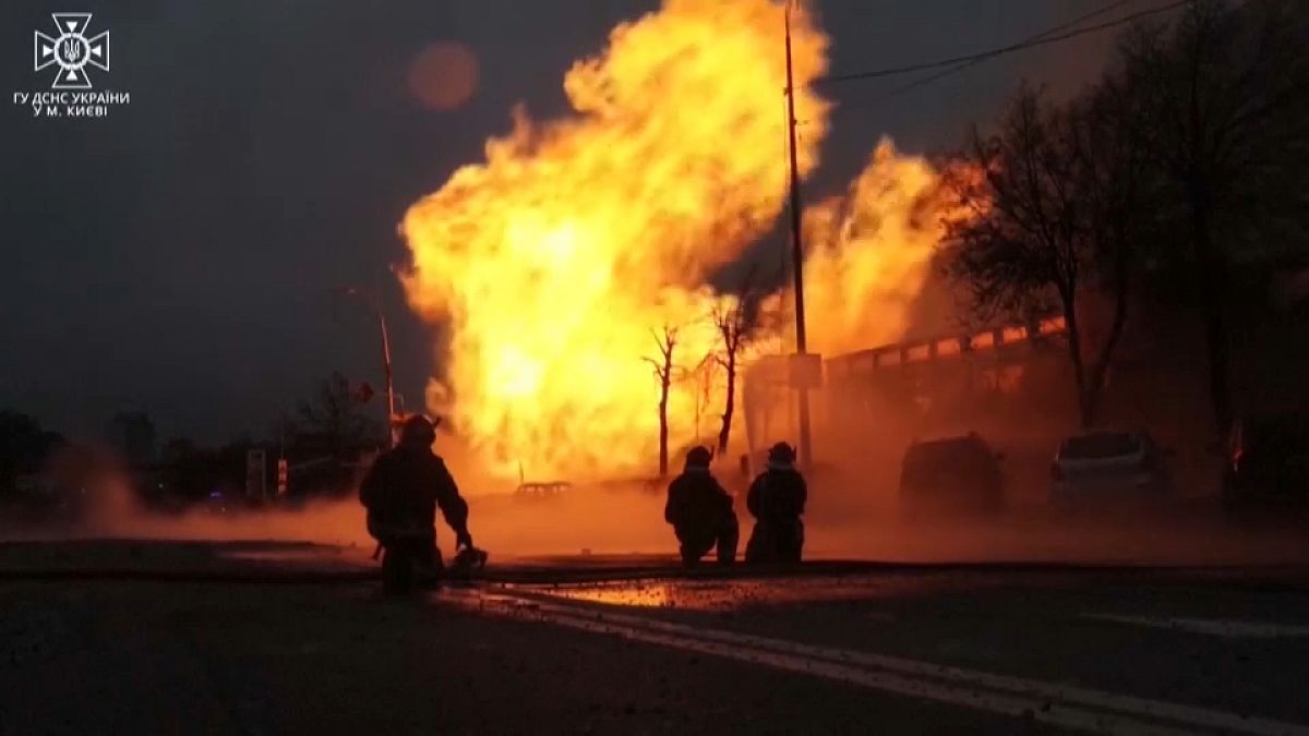 تُظهر لقطات في هذا الفيديو كيف يكافح رجال الإطفاء النيران الناجمة عن القصف الروسي المكثف على أوكرانيا.