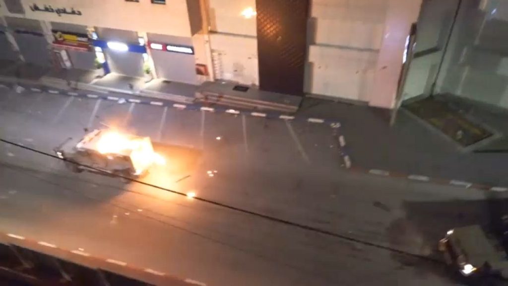 وألقيت زجاجات حارقة على المركبات الإسرائيلية المدرعة التي اقتحمت رام الله، وبينت مقاطع الفيديو إصابة بعضها.
