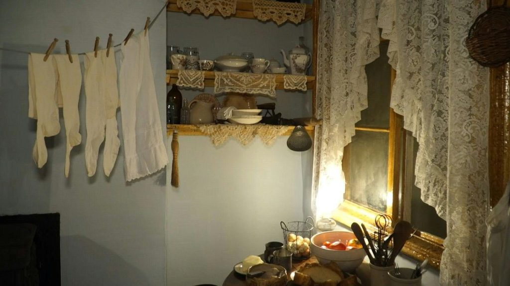 يدخل الزائرون إلى شقة صغيرة مرتّبة جداً مؤلفة من غرفتين بأرضيات ريفية وأثاث خشبي. الغسيل معلق في المطبخ، وهناك سريران في الغرفة الأخرى. على رف الموقدة، هناك صورة لأبراهام لينكولن الرئيس السادس عشر للولايات المتحدة ومهندس إلغاء العبودية عام 1865.