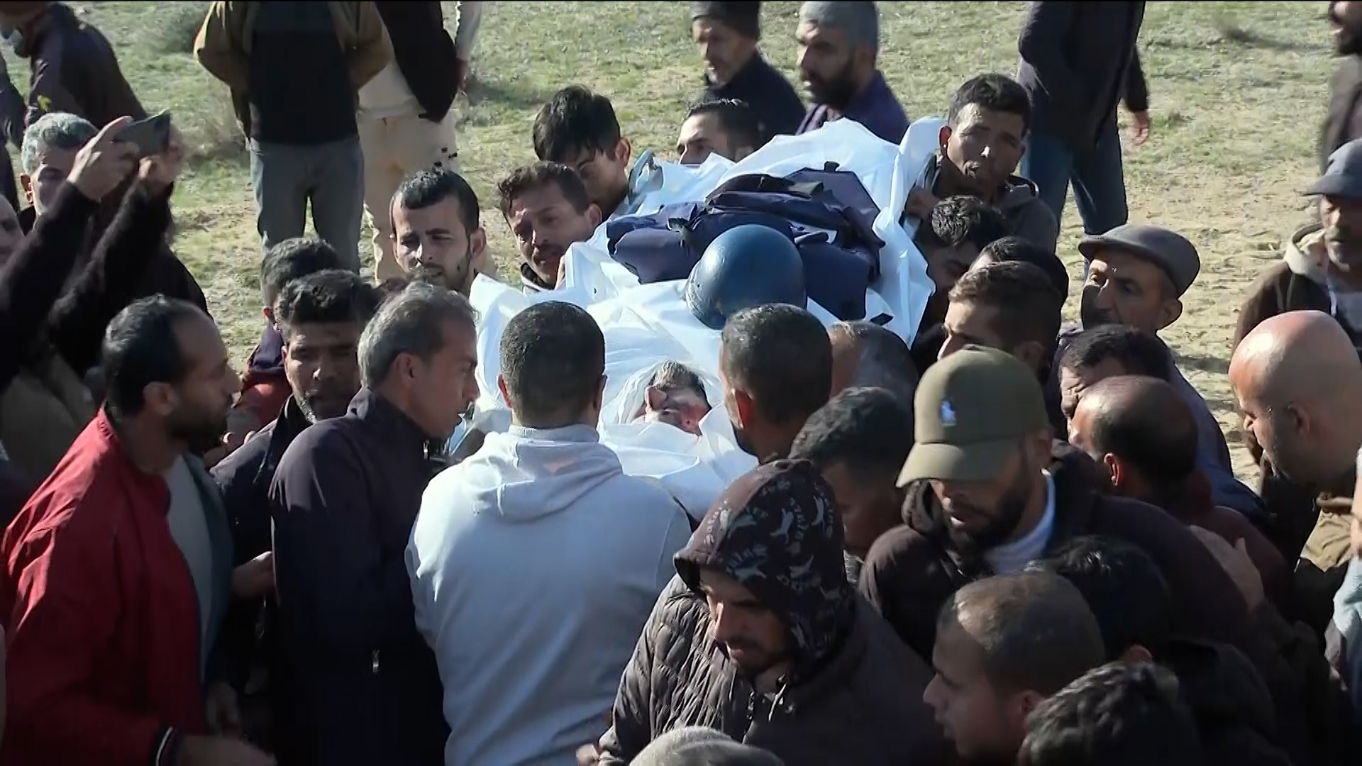 وشيع جثمان أبو دقة أفراد من عائلته وزملاؤه ومحبوه في قطاع غزة.