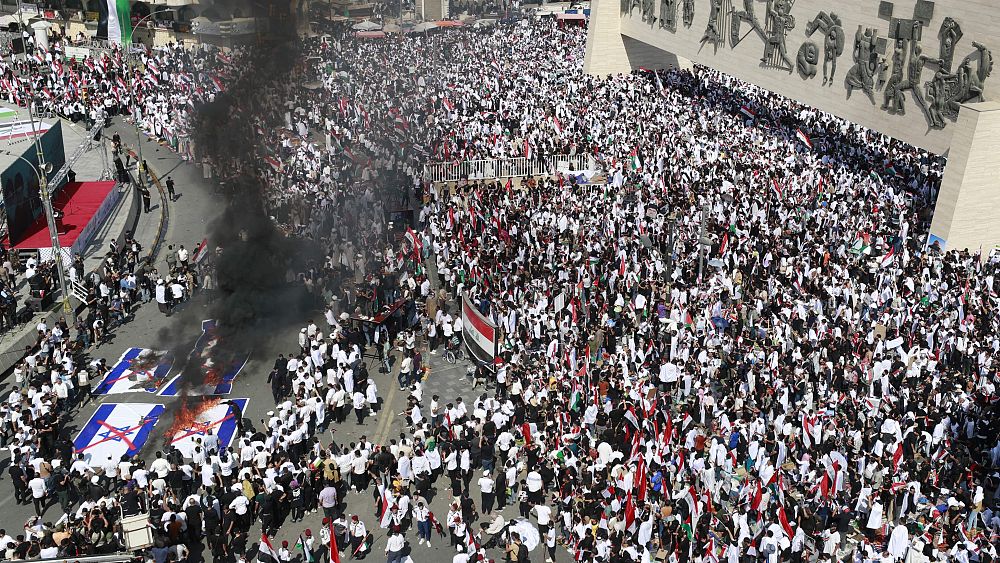وغصّت ساحة التحرير في بغداد بآلاف المتظاهرين الذين لبّوا دعوة الزعيم الشيعي مقتدى الصدر. وردّد المشاركون هتافات “كلا كلا للاحتلال” و”كلا كلا أميركا” و”كلا كلا اسرائيل”.