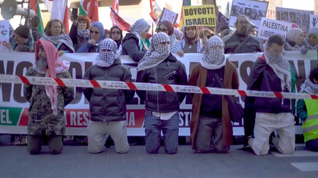 خرج آلاف المواطنين إلى شوارع مدريد، يوم السبت، واحتشدوا أمام وزارة الخارجية الإسبانية للمطالبة بوقف إطلاق النار في غزة وتحقيق “العدالة في فلسطين” مع دخول الحرب بين إسرائيل والفصائل الفلسطينية أسبوعها الثالث عشر دون وجود أي بوادر لحل في الأفق.