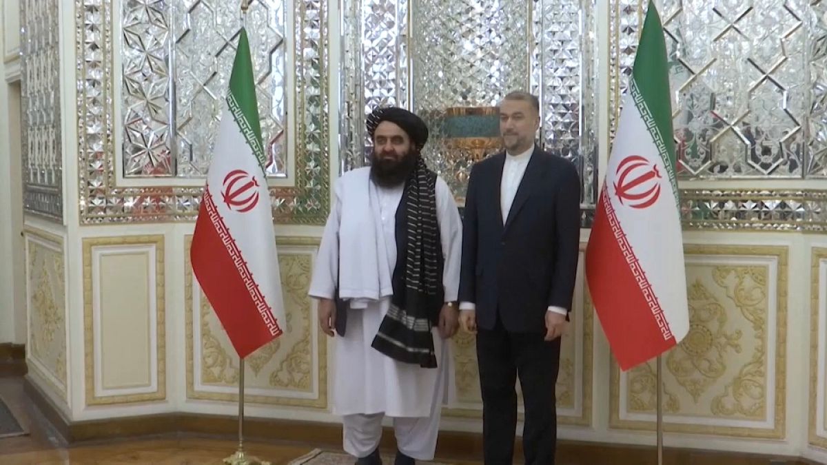 التقى وزير الخارجية في حكومة طالبان بأفغانستان أمير خان متقي بوزير الخارجية الإيراني حسين أمير عبد اللهيان خلال زيارة لطهران لحضور “المؤتمر الدولي حول قضية فلسطين” يوم الأحد.